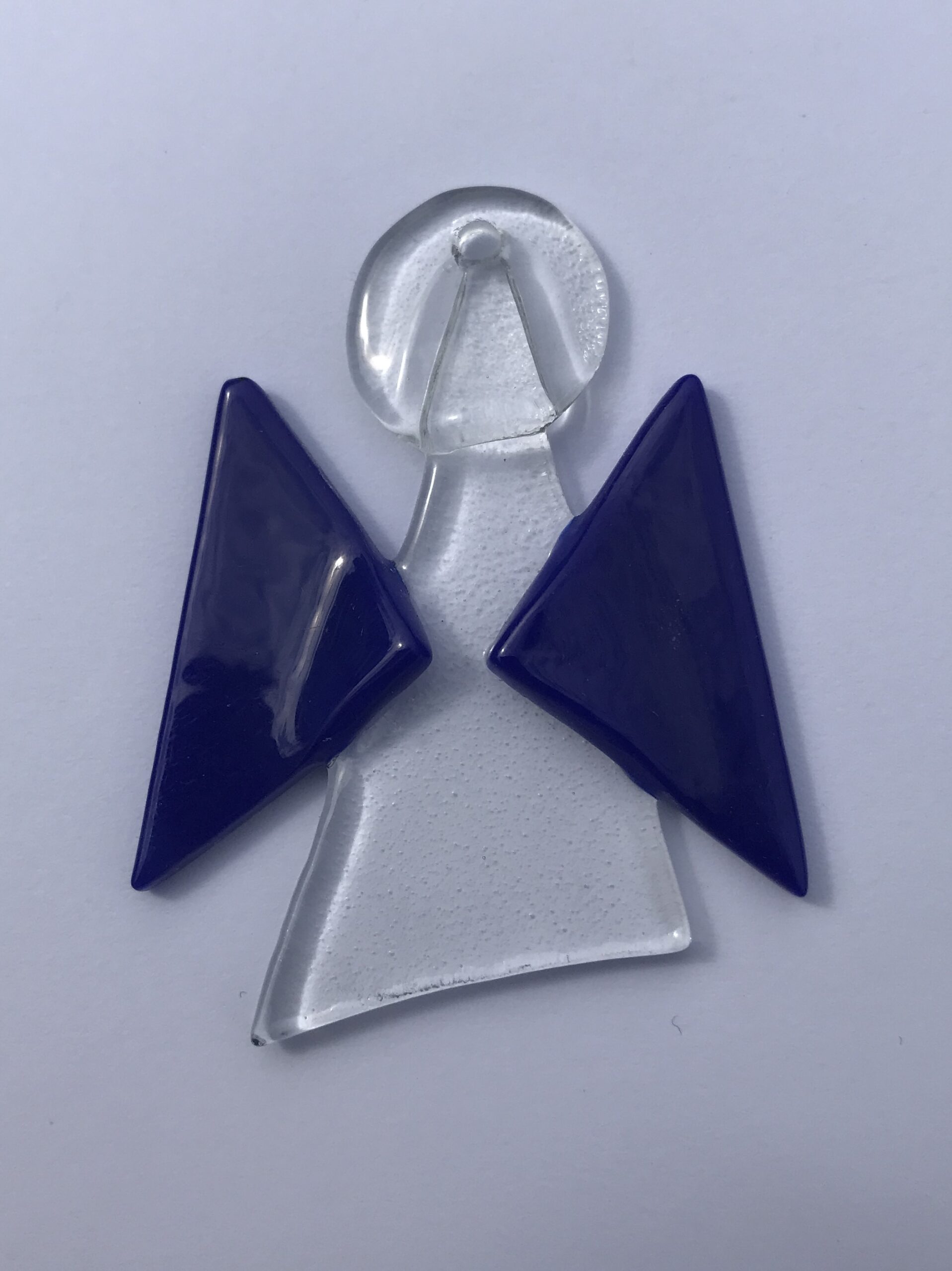Die Engel werden aus Glas hergestellt und im Fusingofen verschmolzen. Alle Engel haben ein Loch um sie aufzuhängen.