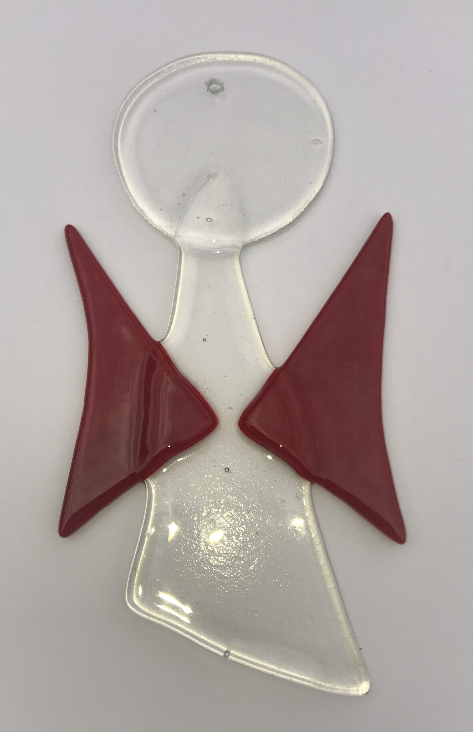 Die Engel werden aus Glas hergestellt und im Fusingofen verschmolzen. Alle Engel haben ein Loch um sie aufzuhängen.