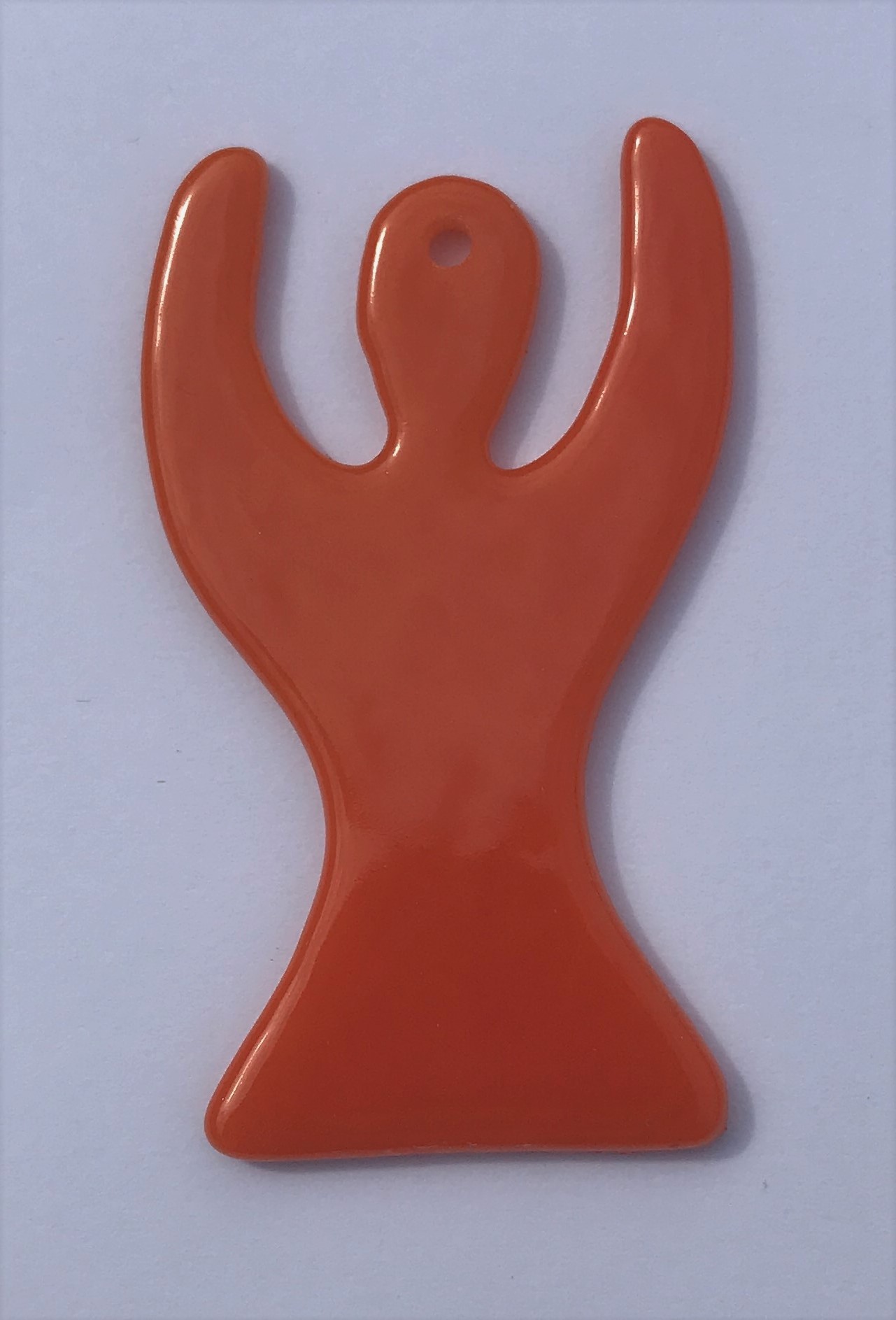 Die Engel werden aus Glas hergestellt und im Fusingofen verschmolzen. Alle Engel haben ein Loch um sie aufzuhängen.
